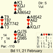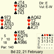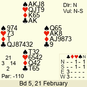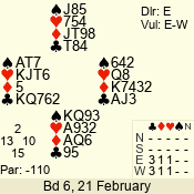 Con | Dc | Res | Score | Ld | Pairs | Rd | Tbl | 6 NT | E | -3 | 150 | 6 | 10 - 05 | 6 | 10 |