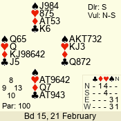 3 NT | S | +1 | 630 | T | 08 - 05 | 4 | 8 |