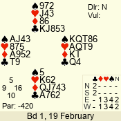 Con | Dc | Res | Score | Ld | Pairs | Rd | Tbl | 4  | E | = | -420 | A | 06 - 04 | 3 | 6 |