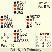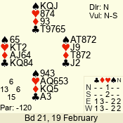 Con | Dc | Res | Score | Ld | Pairs | Rd | Tbl | 2  | E | -3 | 150 | A | 06 - 06 | 1 | 6 |