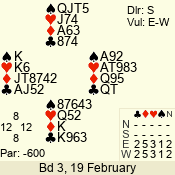 Con | Dc | Res | Score | Ld | Pairs | Rd | Tbl | 4  | S | = | 620 | 3 | 05 - 01 | 5 | 5 |