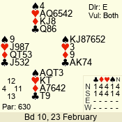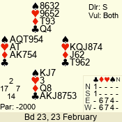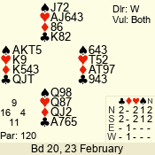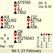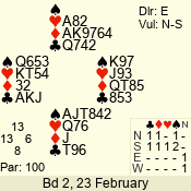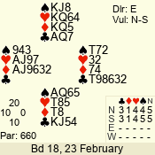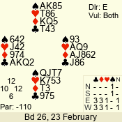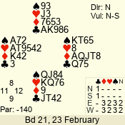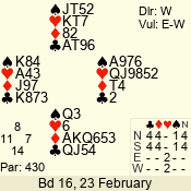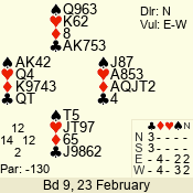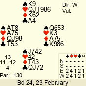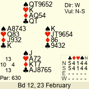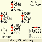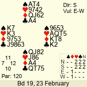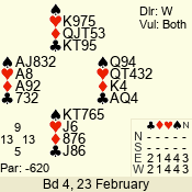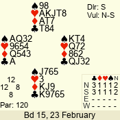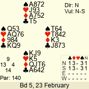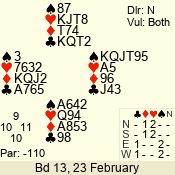 | 3 NT | S | +1 | 430 | 5 | 13 - 13 | 1 | 13 |