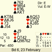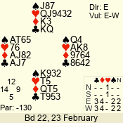 | 3 NT | E | +2 | -460 | 2 | 11 - 11 | 1 | 11 |