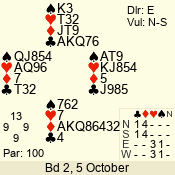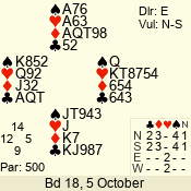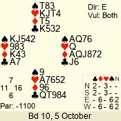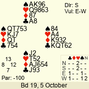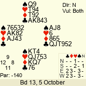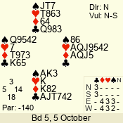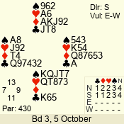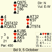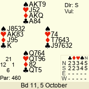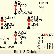 Con | Dc | Res | Score | Ld | Pairs | Rd | Tbl | 4  | S | +1 | 450 | 4 | 05 - 11 | 23 | 5 |