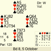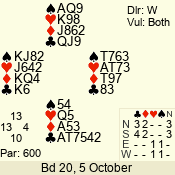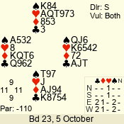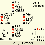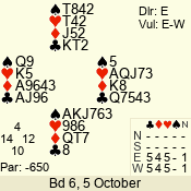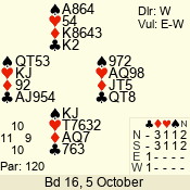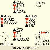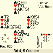Con | Dc | Res | Score | Ld | Pairs | Rd | Tbl | 5  | S | +1 | 620 | T | 04 - 12 | 23 | 4 |