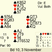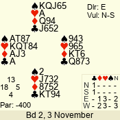 Con | Dc | Res | Score | Ld | Pairs | Rd | Tbl | 3  | E | -4 | 400 | Q | 01 - 03 | 5 | 1 |