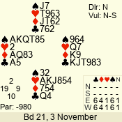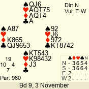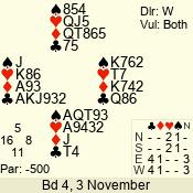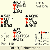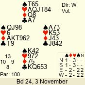 3 NT | W | +1 | -430 | 2 | 01 - 03 | 5 | 1 |