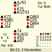 Con | Dc | Res | Score | Ld | Pairs | Rd | Tbl | 3 NT | S | +3 | 690 | 3 | 05 - 06 | 6 | 5 |