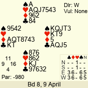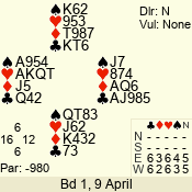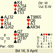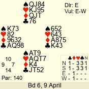 Con | Dc | Res | Score | Ld | Pairs | Rd | Tbl | 3 N | E | -3 | 300 | 4 | 06 - 05 | 2 | 6 |