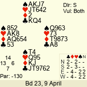 Con | Dc | Res | Score | Ld | Pairs | Rd | Tbl | 4  | E | -2 | 200 | Q | 04 - 04 | 1 | 4 |