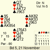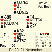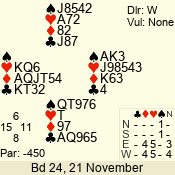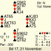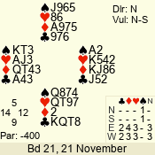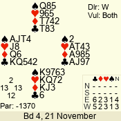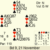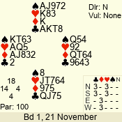 Con | Dc | Res | Score | Ld | Pairs | Rd | Tbl | 3 N | S | +1 | 430 | 9 | 03 - 03 | 1 | 3 |