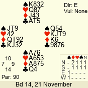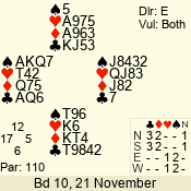 Con | Dc | Res | Score | Ld | Pairs | Rd | Tbl | 4  | E | -2 | 100 | Q | 10 - 11 | 20 | 10 |
