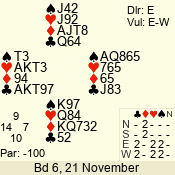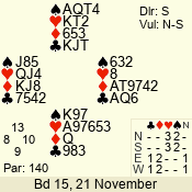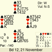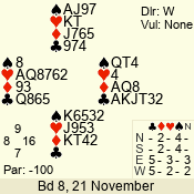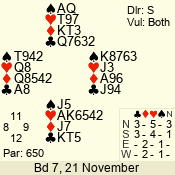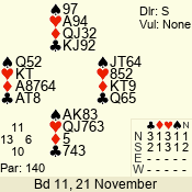 Con | Dc | Res | Score | Ld | Pairs | Rd | Tbl | 4  | S | +3 | 710 | A | 09 - 12 | 18 | 9 |