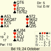 | 3 NT | W | -2 | 100 | 4 | 10 - 10 | 11 | 10 |