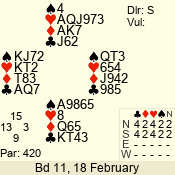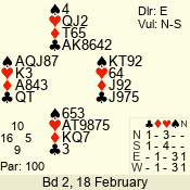 | 3 NT | W | +2 | -660 | A | 01 - 04 | 4 | 1 |