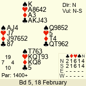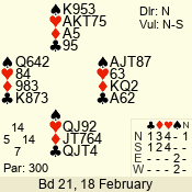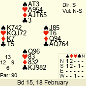 | 3 NT | W | +4 | -720 | J | 04 - 05 | 6 | 4 |