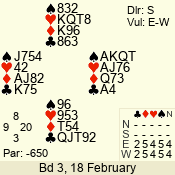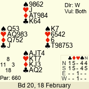 | 3 NT | W | +2 | -660 | A | 06 - 03 | 4 | 6 |
