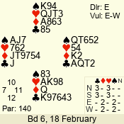 | 3 NT | W | +2 | -460 | 5 | 01 - 02 | 6 | 1 |