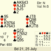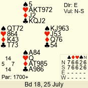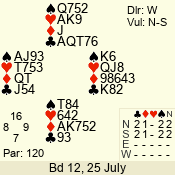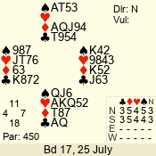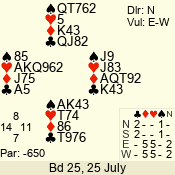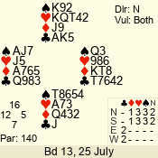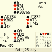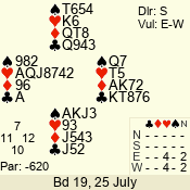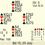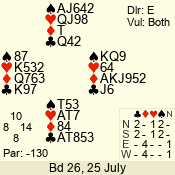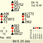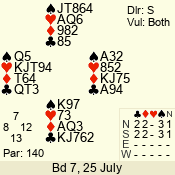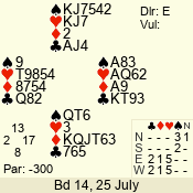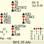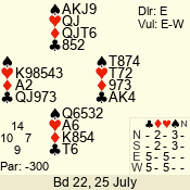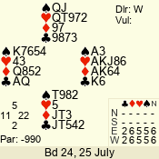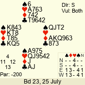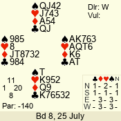 | Con | Dc | Res | Score | Ld | Pairs | Rd | Tbl | | 3 N | E | -1 | 50 | K | 06 - 03 | 7 | 5 |