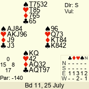| Con | Dc | Res | Score | Ld | Pairs | Rd | Tbl | | 1 N | N | +2 | 150 | 2 | 11 - 09 | 6 | 2 |