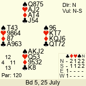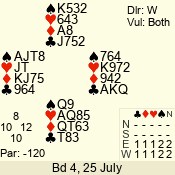 | Con | Dc | Res | Score | Ld | Pairs | Rd | Tbl | | 1 N | N | +1 | 120 | 6 | 04 - 02 | 9 | 6 |