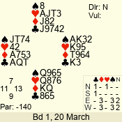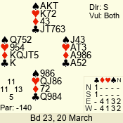 | 3 NT | S | -1 | -100 | 4 | 14 - 08 | 8 | 1 |