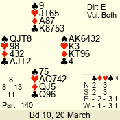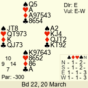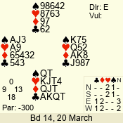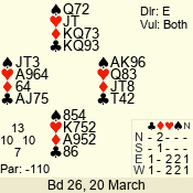 | 3 NT | E | +1 | -630 | T | 10 - 13 | 1 | 3 |
