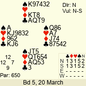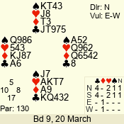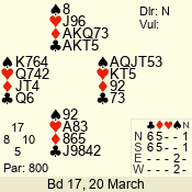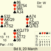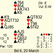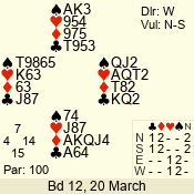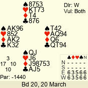 | 3 NT | W | +2 | -460 | 7 | 10 - 03 | 6 | 6 |