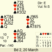 | 3 NT | E | +2 | -460 | 8 | 05 - 11 | 1 | 6 |