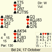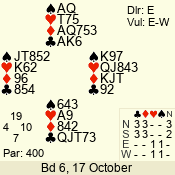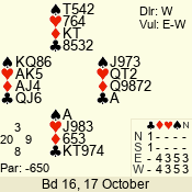 3 NT | W | +2 | -660 | J | 04 - 08 | 6 | 4 |