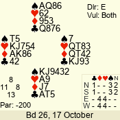 Con | Dc | Res | Score | Ld | Pairs | Rd | Tbl | 1 NT | E | -2 | 200 | 5 | 05 - 02 | 4 | 5 |