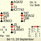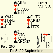 Con | Dc | Res | Score | Ld | Pairs | Rd | Tbl | 7 NT | N | = | 1520 | 8 | 06 - 03 | 4 | 6 |