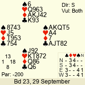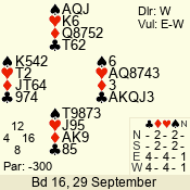 Con | Dc | Res | Score | Ld | Pairs | Rd | Tbl | 2 NT | W | -3 | 300 | 6 | 08 - 04 | 5 | 8 |