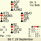 Con | Dc | Res | Score | Ld | Pairs | Rd | Tbl | 4  | N | +1 | 450 | A | 08 - 09 | 9 | 8 |