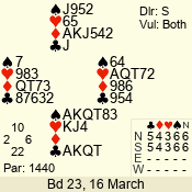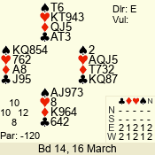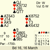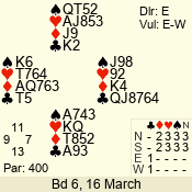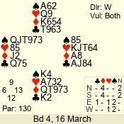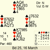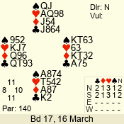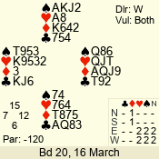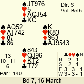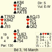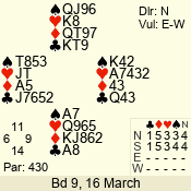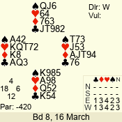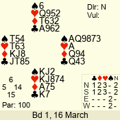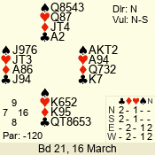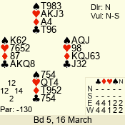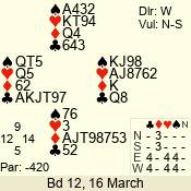 | 3 NT | W | +1 | -430 | J | 07 - 05 | 3 | 7 |