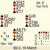 | 3 NT | W | +2 | -460 | J | 02 - 04 | 8 | 2 |