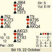 | Con | Dc | Res | Score | Ld | Pairs | Rd | Tbl | 4  | E | -3 | 300 | T | 19 - 06 | 1 | 2 |