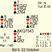 | Con | Dc | Res | Score | Ld | Pairs | Rd | Tbl | 2  | S | +1 | 140 | A | 09 - 04 | 1 | 10 |