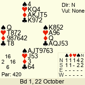 | Con | Dc | Res | Score | Ld | Pairs | Rd | Tbl | Sec | 4  | S | = | 420 | 8 | 14 - 02 | 4 | 5 | b |