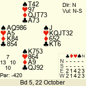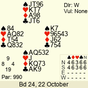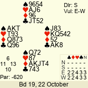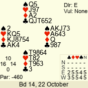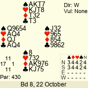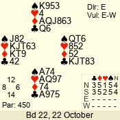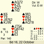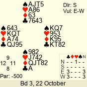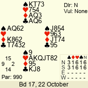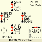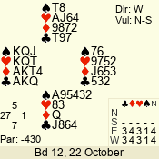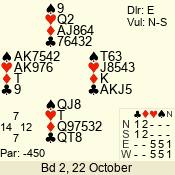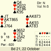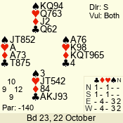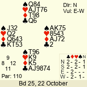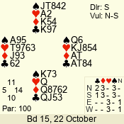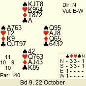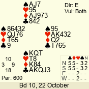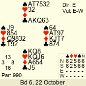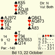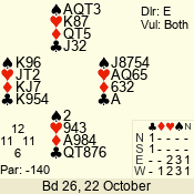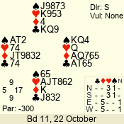 | Con | Dc | Res | Score | Ld | Pairs | Rd | Tbl | Sec | | 1 N x | E | -2 | 300 | 3 | 13 - 08 | 6 | 4 | b |