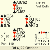 | Con | Dc | Res | Score | Ld | Pairs | Rd | Tbl | Sec | 2  | W | = | -110 | Q | 14 - 01 | 5 | 5 | b |