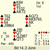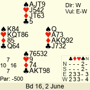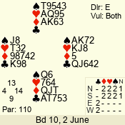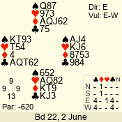 | Con | Dc | Res | Score | Ld | Pairs | Rd | Tbl | | 2 N | W | -3 | 300 | J | 05 - 02 | 11 | 3 |