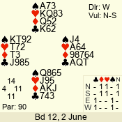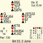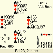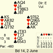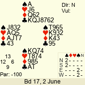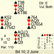 | Con | Dc | Res | Score | Ld | Pairs | Rd | Tbl | | 2 N | E | -2 | 200 | 4 | 15 - 02 | 10 | 7 |
