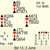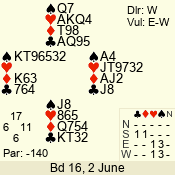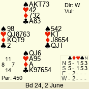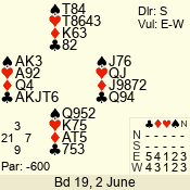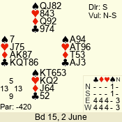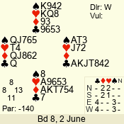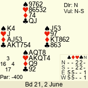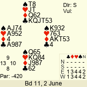 | Con | Dc | Res | Score | Ld | Pairs | Rd | Tbl | | 3 N | W | -4 | 400 | 7 | 07 - 04 | 13 | 3 |