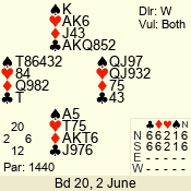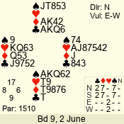 | Con | Dc | Res | Score | Ld | Pairs | Rd | Tbl | | 6 N | N | +1 | 1470 | Q | 18 - 10 | 10 | 1 |
